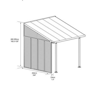 Sidevæggen kan monteres på begge sider af terrasseoverdækningen og passer til alle Feria/Olympia terrassetage med en dybde på 2950 mm.